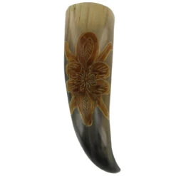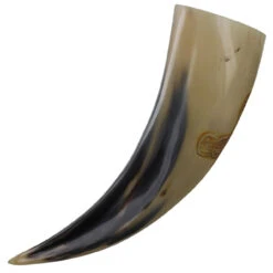 Brass Adorned Medieval Drinking Horn With Black Leather Holder