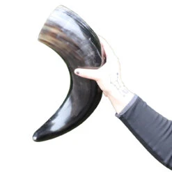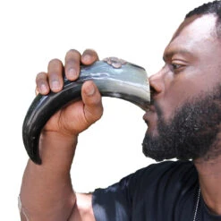 Fire Burned Medieval Drinking Horn With Black Leather Holder