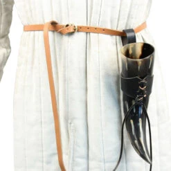 Fire Burned Medieval Drinking Horn With Brown Leather Holder