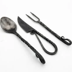 Orange Glow 3PC Set Medieval Iron Silverware Fork, Spoon, And Knife