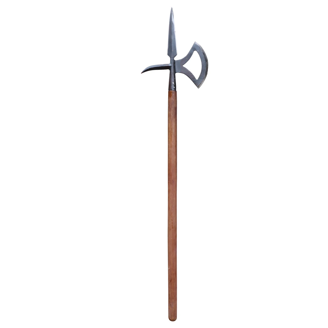 Poleaxes were effective at defeating armored opponents and opponents on horseback. The hook or thorn located on the spine of the axe head was used to grapple mounted warriors, and the spike on top could potentially pierce armor and deliver a killing blow when thrusted into your opposer. This replica medieval poleaxe features an open-bladed construction, meaning that the center of the axe is cut out. This reduces the weight, just as a fuller reduces the weight of a sword blade. The axe head is forged from iron, and has a weathered appearance. The 34.5-inch shaft is made from durable sheesham wood. Arm yourself for the battle ahead with this reliable poleaxe, and you’ll be prepared for anything in your way. Overall Length: 47 inches
