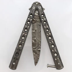 Gold Panning Clip Point Balisong Butterfly Knife Flipper | Damascus Steel Blade | Tanto Point