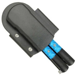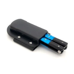 Sporting a titanium Damascus steel drop point blade, the slim build and good weight of this balisong butterfly knife delivers nice action in an attractive package (or you can upgrade to a damascus steel blade!). The black stainless steel handle is decorated with a Azure Blue inserts that are very attractive. A metal safety latch is included to lock the blade into place when it is not in use as well as when it is deployed. Please make sure to check your local laws regarding the procession and import of these knives. Overall Length: 9 Inches Blade Length: 4 Inches Blade Material: Stainless Steel, Black finish Blade Style: Clip Point Blade Thickness: 2.50 mm Handle: 4.75 Inches, Steel with cast metal inserts Includes: Safety Latch, Heavy Duty Construction, 1 Inch Fuller, ABS Holster.