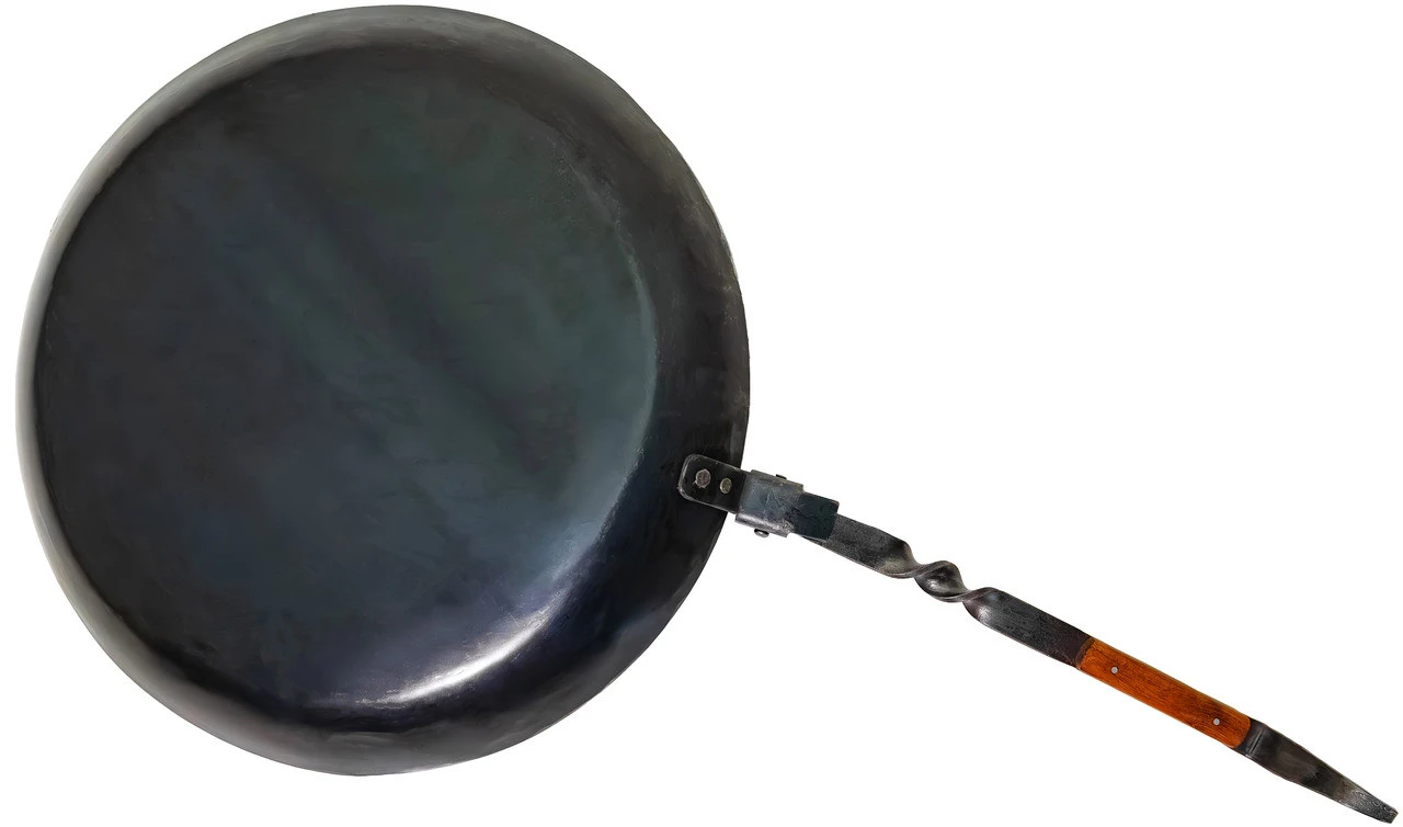 Camping with friends inarguably better than camping alone. However, it can be difficult to find camping gear for larger groups. The Convenient Company Heavy Duty Folding Frying Pan is the obvious choice when it comes to outdoor cookware when serving large groups. This pan has an edge diameter of 14.55 inches which means it is large enough for any size meal. The handle folds into the pan for compact storage and carry so it takes up as little room in your pack as possible. Wood scales are pinned to the handle in two places for easy handling when the pan is over a fire. The end of the handle is rolled into an elegant spiral and twisted as well for a classic finishing touch. The Convenient Company Folding Frying Pan is perfect for any outdoor enthusiast or indoor chef. Overall Length w/ Handle: 28.25 Inches. Weight: 5 lbs.