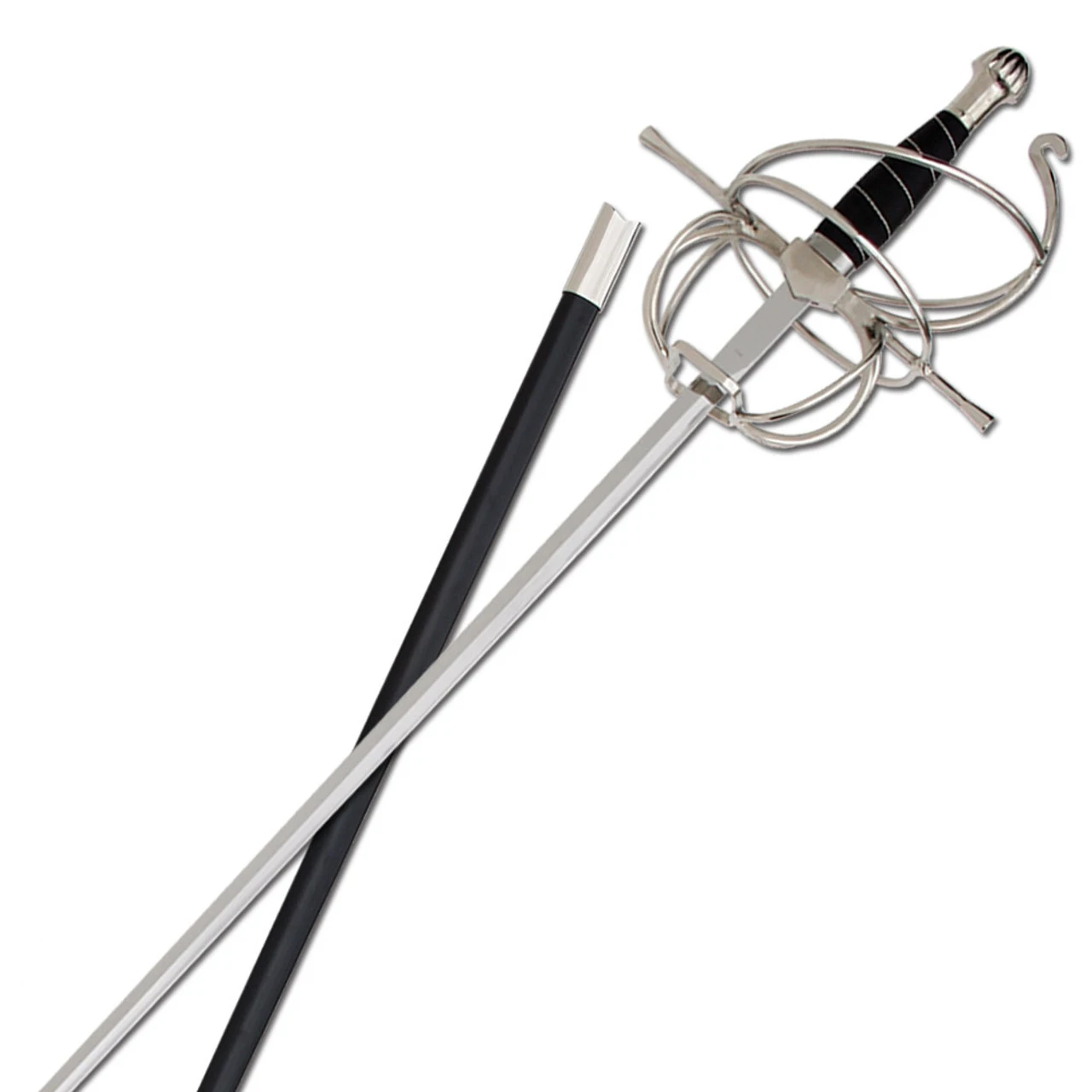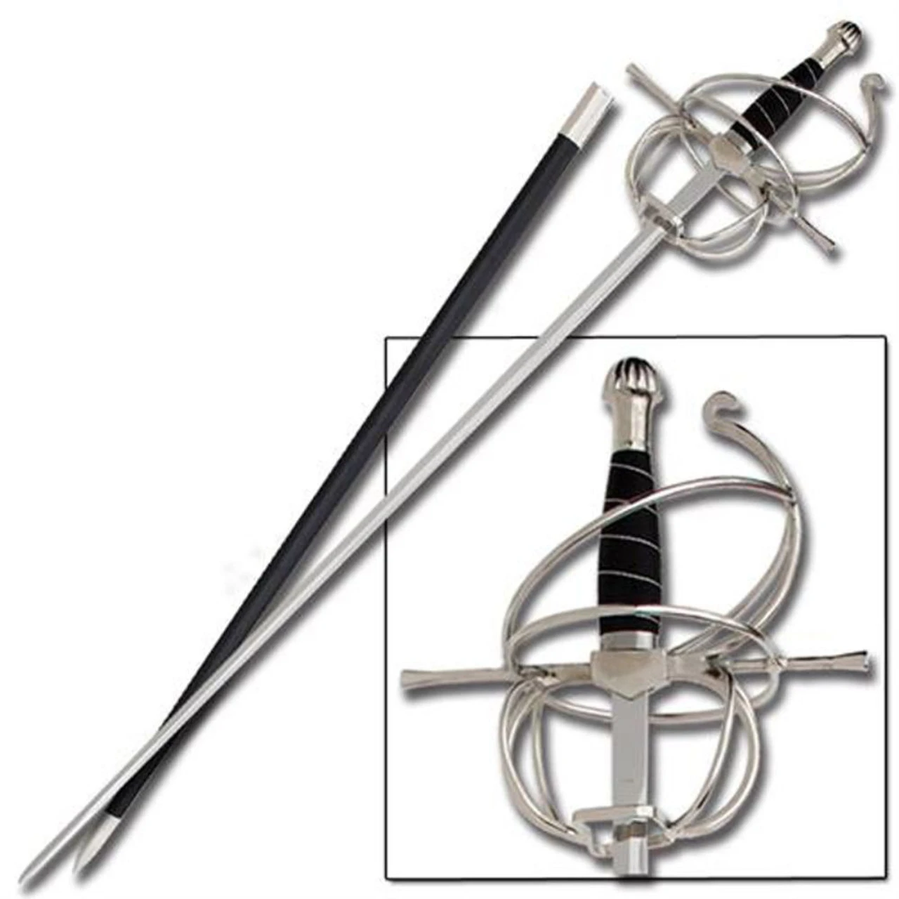 With a blade that measures out to just over 36 inches in length, the 43 inch pin-point reach of this sword shows its excellence in fencing and sparring. The elaborate knuckle guard provides protection for the bearers hand along with a deluxe, three-branch loop guard while the rubber handle makes the sword very comfortable to use and provides a better grip.