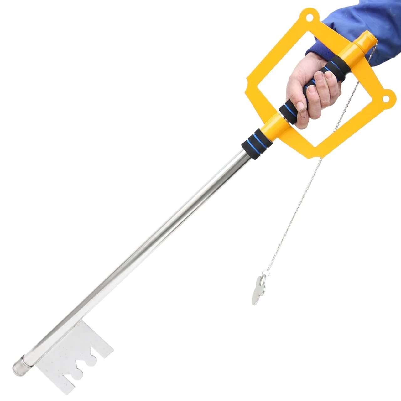 Be your own hero with the Giant Metal Fantasy Golden Key To The City Gamer Sword! It features an all metal construction with a giant key head, black wrapped handle that feels nice and smooth. It also features a chain dangling at the tip of the handle just like in the game. You can give this prized possession to your friend as a gift or keep it for yourself. The Giant Metal Fantasy Golden Key To The City Gamer Sword makes a great display or completes your perfect KH Costume!