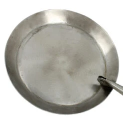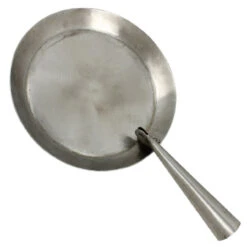 Suitable for open fires as well as gas and wood cookers, this frying pan is hand forged from iron with a folding handle. A great addition to any re-enactment camp site, it is based on a medieval pattern but this generic frying pan was also used in Roman and Dark Ages times. With a diameter of 7.5 inches and 1 inch deep, the pan is not coated but rather improves with increased use by deep frying. Overall Length with Handle: 13 Inches