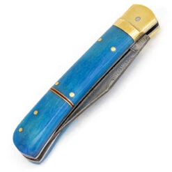 Lever Lock Ventura Blue Damascus Steel Knife