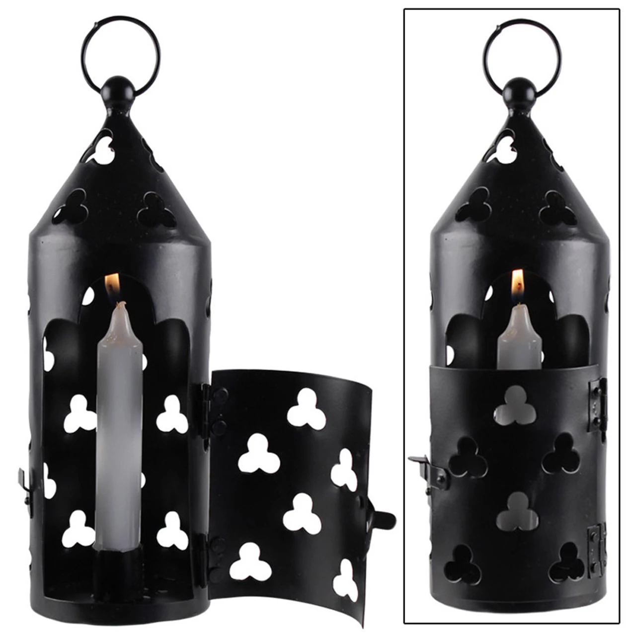 Hand crafted from carbon steel and highly functional. Blackened for a nice antique finish and perfect for Medieval or Roman style re-enactments. 1 Inch Candle holder fits most taper candles. Length: 10.5 Inches Width: 4 Inches Approximate Weight: 15.5 oz