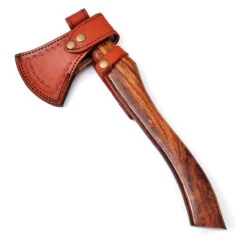 The outdoors just became a whole lot easier to tackle with the help of this beautiful supreme quality axe. The head is made from a blend of 1095 and 14N50 steels to create gorgeous wavelike pattern that is unique for every axe. This axe is well balanced and features a 3.25-inch-long blade that is perfect for chopping as well as a squared end that makes an excellent hammer for tent stakes or other objects. The handle is made from durable rosewood that has been stained and sealed for a nice pecan finish. Included with this masterfully-crafted axe is an even more exquisite hand tooled sheath made from quality cowhide leather and features two snap closures and a belt loop for hands-free carry. With this beauty by your side, the wilderness doesn’t stand a chance against you. Overall Length: 14.75 inches