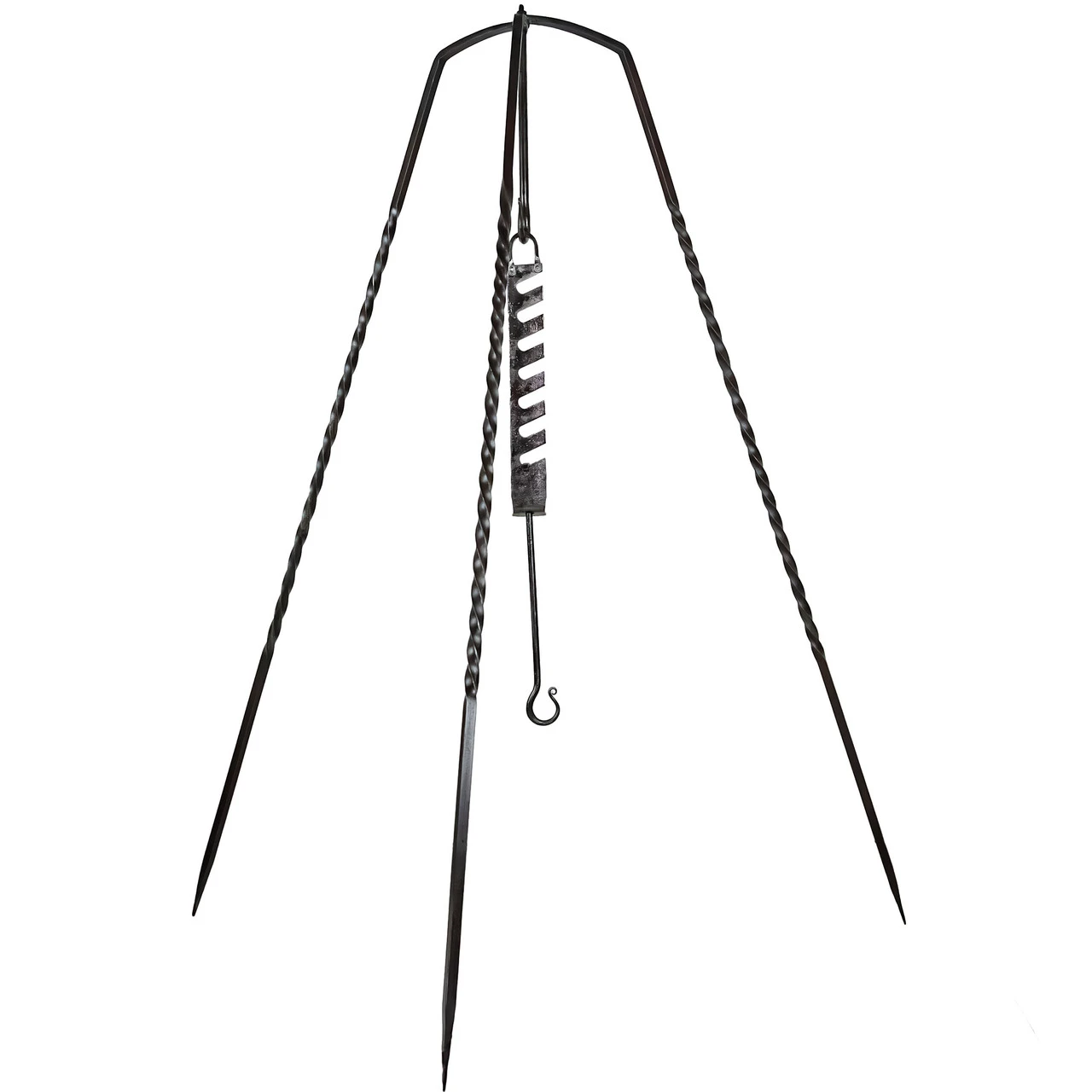 Ruler Feast Medieval Camping Outdoor Cooking Food Prep 56.5 Inch Forged Iron Tripod W/ Adjustable Pot Hook