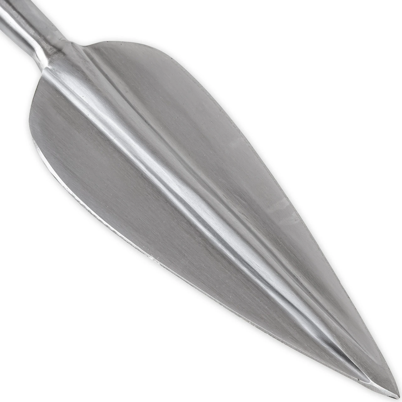 The boar spearhead was a hunting spearhead used during medieval times and it is characterized by the protrusions on either side of the shaft of the spearhead. The Steel Barricade Boar Spearhead is a hand forged spearhead with a curved blade and a rounded center ridge on the blade. This spearhead arrives predrilled so it is ready to be mounted to a shaft right out of the box. Composed of high carbon steel, this spearhead is durable and strong for reenactment and costume authenticity. Traditionally, the protrusions were to stop aggressive animals and keep them at a distance after stabbing them with the blade. The Steel Barricade Boar Spearhead is perfect for any medieval enthusiast or reenactor. Overall Length: 18.38 Inches. Weight: 2.65 lbs.