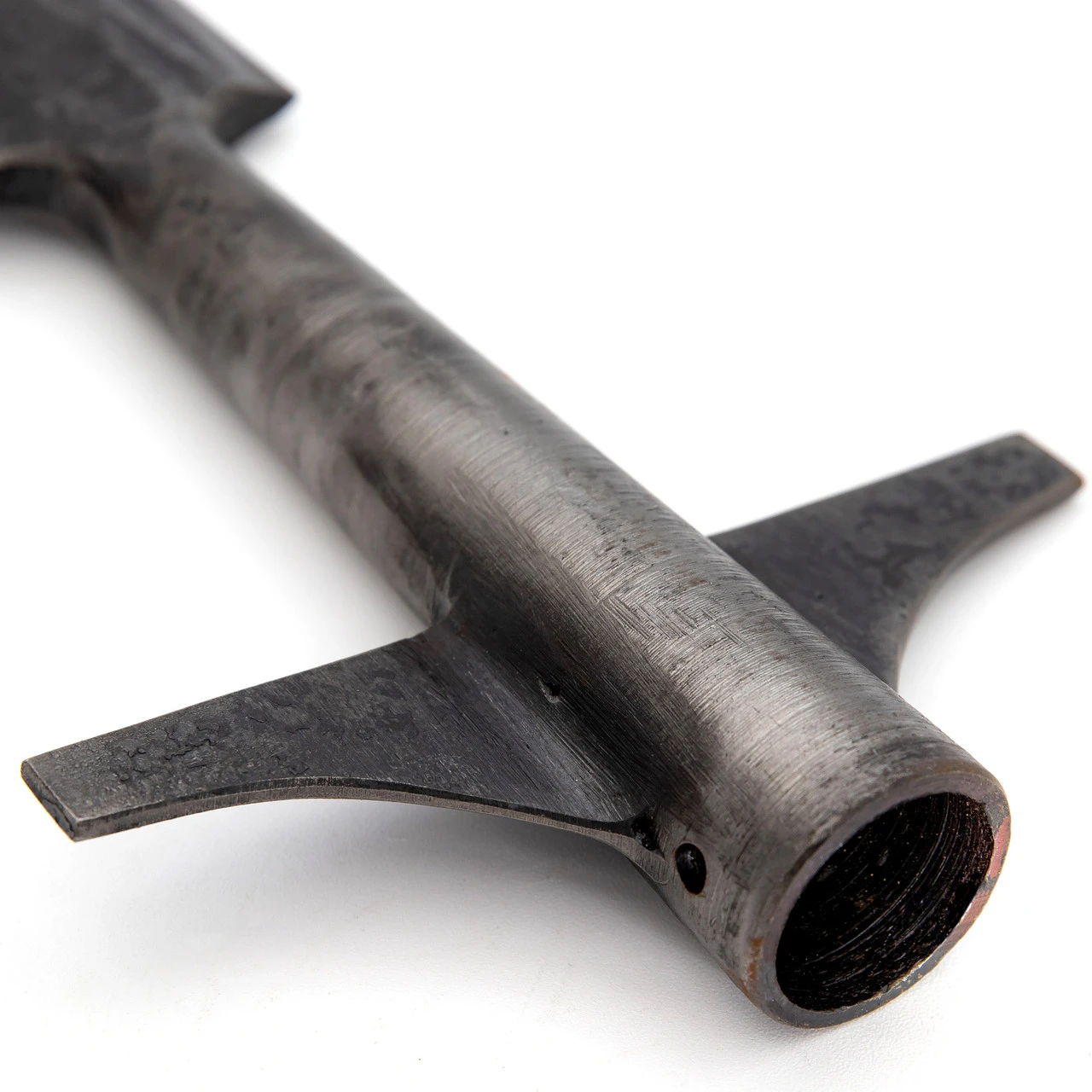 The Steel Hawk Winged Hunting Spear is a functional historical Replica of Duke Friedrich IV’s hunting spear featuring the winged spear head base and tall, slim blade. This spear head is hand forged from a single rod of high carbon steel and has a dark, textured antique finish. The Steel Hawk is, of course, sharpened for your convenience and ready to be attached to a shaft and taken on the hunt right out of the box. The blade of the is 10.25 inches attached to a 5.5-inch socket with 2-inch wings protruding from either side. The Steel Hawk’s socket diameter to accommodate a shaft is approximately one inch. This listing is for the spear head only- no shaft is included. Overall Length: 15.75 Inches. Weight: 1.5 lbs.