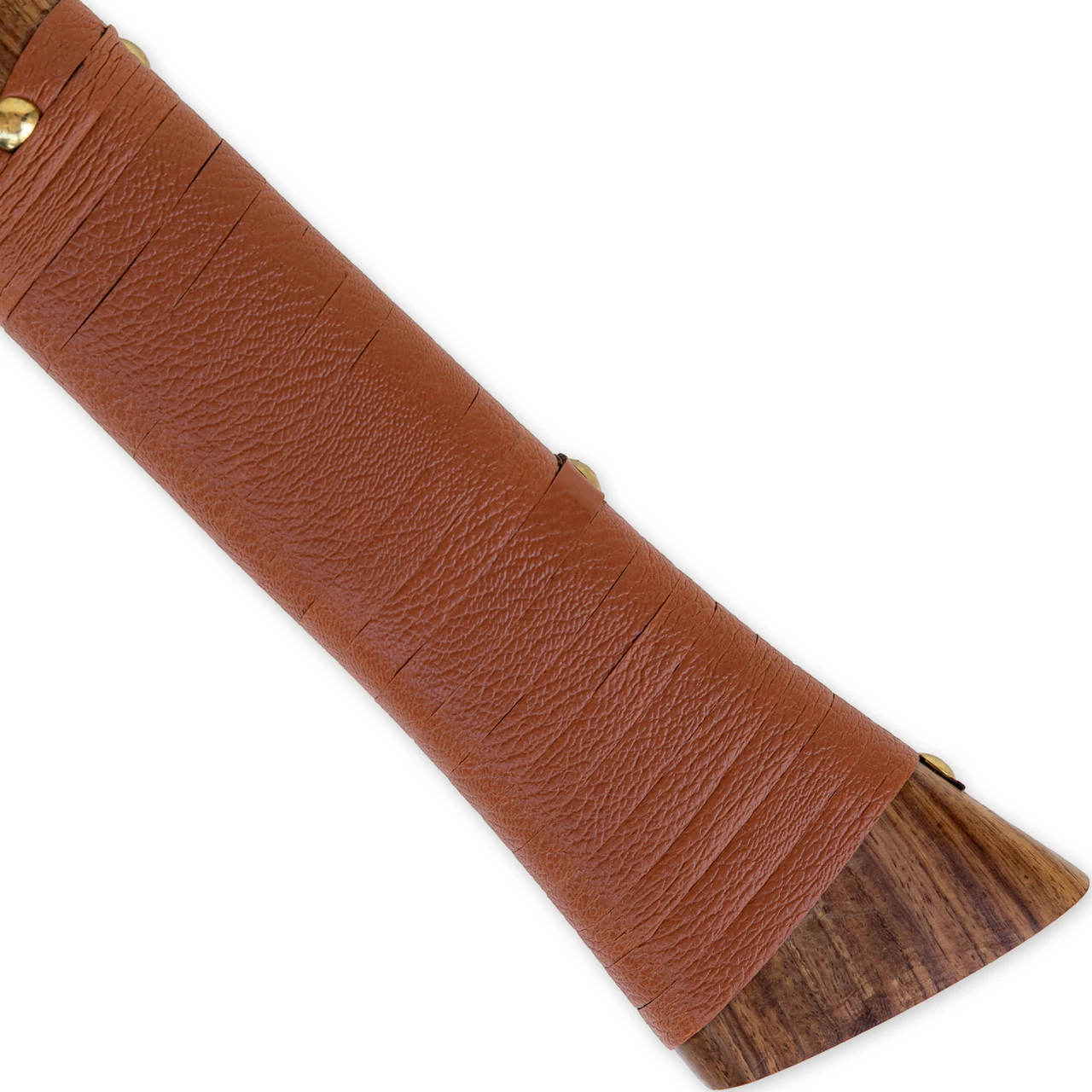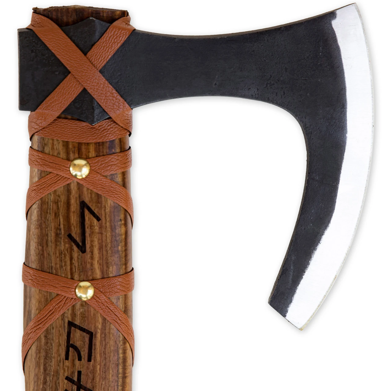 The Sunny Blaze Hand Forged Viking Bearded Axe is made with one goal in mind; to make an authentic Skeggøx the Norse of old would use. Complete with Viking runes engraved into the sturdy wooden handle, this axe is blessed with more than just fantastic craftsmanship! Orange leather crosses the handle, secured with gleaming brass rivets for a more detailed design as well as a comfortable grip. The Sunny Blaze Viking Skeggøx is just as comfortable at a campsite as it is at home. Overall Length: 22.5 Inches. Weight: 2.05 lbs.