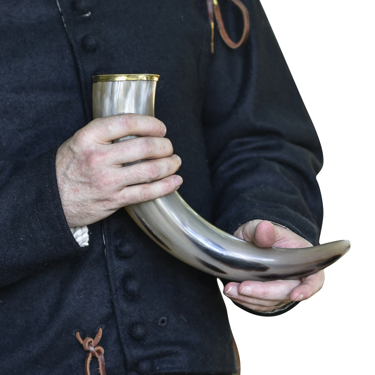 This drinking horn is carefully hand-made from a single piece of horn which has been patiently cut to the right size and then fully cleaned, polished and sealed inside with a food-safe sealant so it is safe to drink from. This 12″-15″ Viking horn comes with a FREE complementary “The Hooded Raven ™” canvas bad to protect it! Great gift choice for any Norse Culture fan! With this horn in your hands filled to the brim with your liquid courage, you can conquer the day just like a true Viking! Hand-made from a single piece of real buffalo horn from India and adorned with a rim made from 100% pure brass. Ethically harvested: no living animal has been hurt in the process.