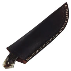 As the moon goes down the woods become saturated in darkness, don’t they? From a place full of color to no color existing at all. For hunters that challenge the darkness to chase their game, flamboyant colors are not necessary. Just a single strike of red to differentiate it from the leaves if the knife falls is enough. The Witching Hour Hunting Knife is a knife with a 440c stainless steel clip point blade that resists corrosion so this knife can last for decades of use. The clip point offers the slight curve necessary for processing game easily as well as the fine pointed tip for intricate work. The Witching Hour is only 0.71 pounds so it won’t add much weight to your gear and allows for expert maneuverability. Composed of real ram horn and wenge wood, the handle won’t fall behind. This full tang hunting knife was made with durability, longevity, and style in mind. All materials used are sourced ethically and known for their strength. The spine of the handle features hand cut grooves along the tang filled in with black resin for further depth of design. No knife is complete without a sheath so the Witching Hour Clip Point Hunting Knife comes with a brown genuine leather sheath equipped with a belt loop for easy carry, travel, and storage. Overall Length: 10 Inches. Weight: 0.71 lbs.